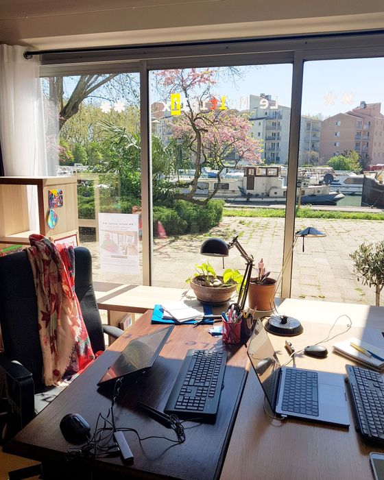 Sa terrasse face aux bateaux de Port Sud sur le canal du midi, il se situe à Ramonville-Saint-Agne près de Toulouse 🚤