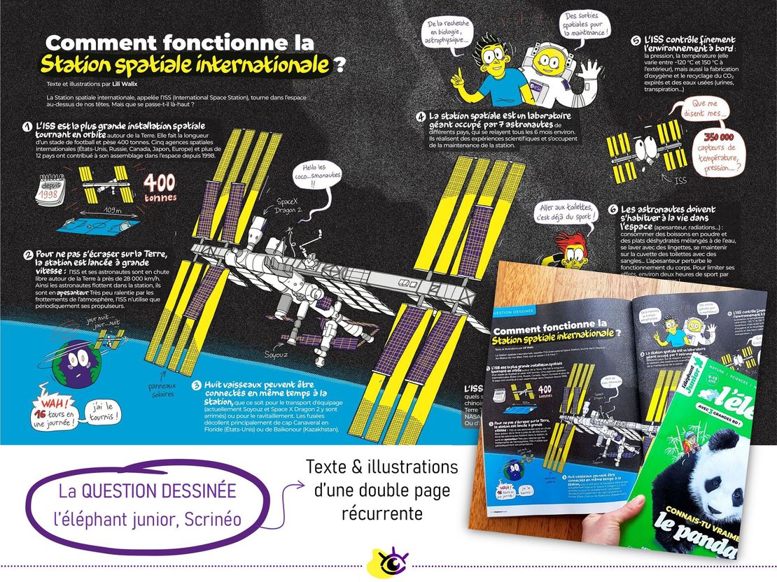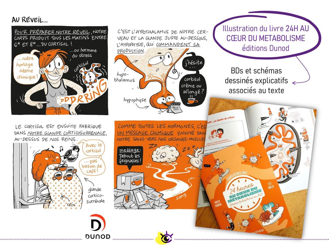 J'ai par exemple illustré les livres "Incroyable Microbiote !" de Julien Scanzi (Leduc) et "24h au cœur du métabolisme" de Xavier Coumoul (Dunod), ainsi que des rubriques récurrentes pour les magazines jeunesse "Les Curionautes des sciences" (Milan) et "L'Eléphant junior" (Scrinéo) 📚